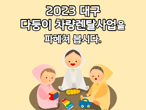 안녕하세요, 오늘은 다둥이가족의 여행 등 장거리 이동 시 다인승 차량 렌탈 및 카시트를 무상 대여하는 2023 대구 다둥이 차량렌탈사업에 대해 이 게시물을 통해 자세히 알아보도록 하겠습니다.
